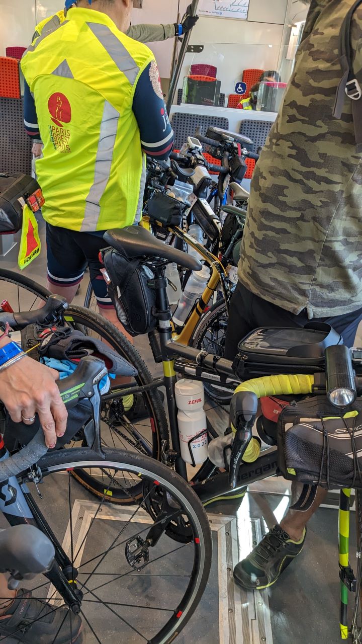 ゴールブースのところで余った?パリブレスト行先プレートがもらえるらしく1枚頂いた。他に参加賞のボトルが€1とか。結構みんな何本も買ってた(バッグに空きがあれば買ってたな~)