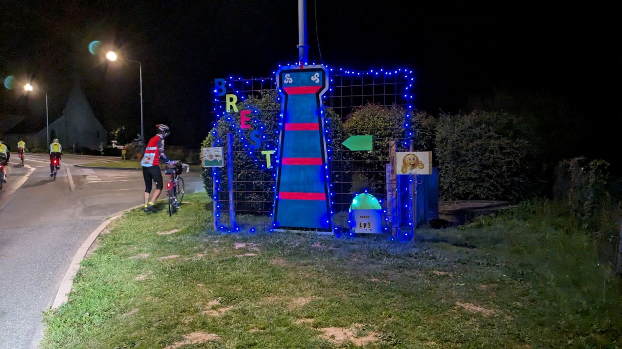 車検はライト等の確認、反射ベストは一瞬指摘されたけどAJの反射ベストの柄が気になったらしい。指さしてアピールしたら通った。スタンプをその先で押してもらいスタート待ち。