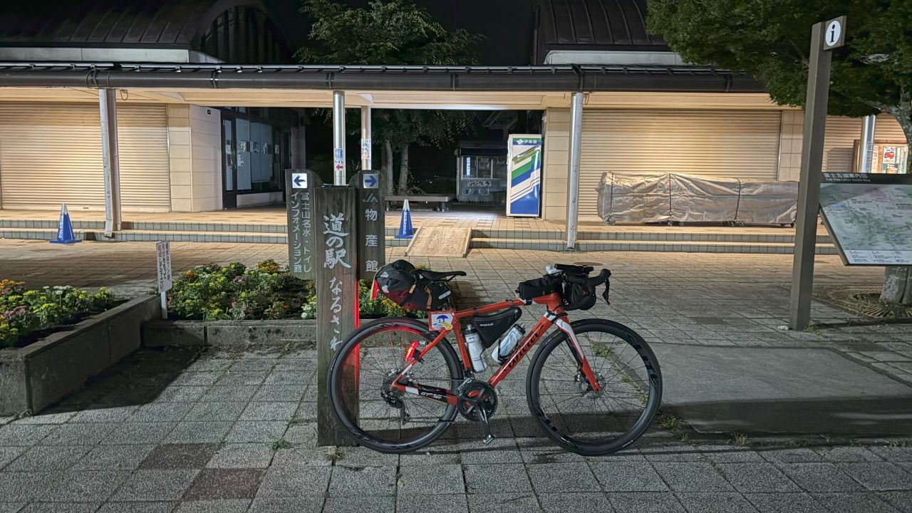 有人チェックしてもらい、シャワー浴びてスッキリ。ドロップバッグで着替え用意してたので着替える。ついでに朝は寒そうなのでサドルバッグに入れてた起毛ジャージと10℃タイツにする。(夏ジャージ+レッグカバーはしまう)