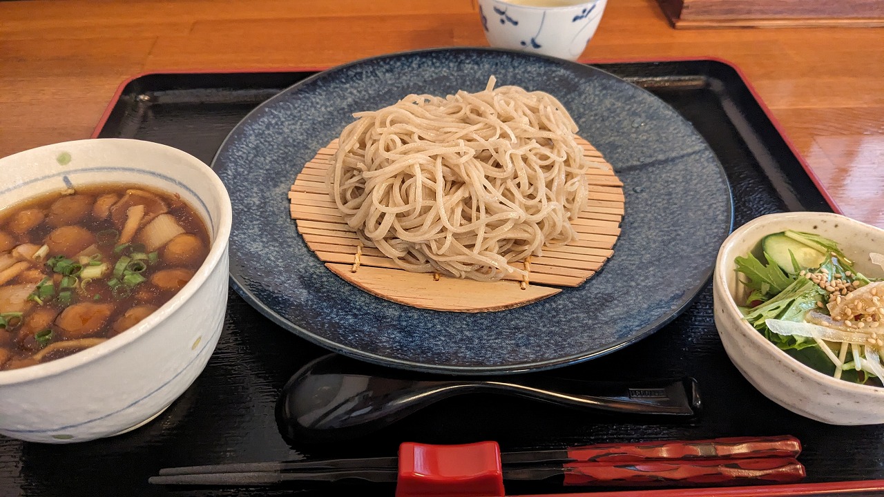 その先のソバ屋でお昼。ちょっと休憩時間が長くなってしまった45分くらい、少し冷えてたので鳥せいろは暖まってよかった、店員さんに頑張ってと声かけられたのと、出発準備してると地元の方に行先聞かれ、浄土平気を付けてねと言われるΣ(´▽`)