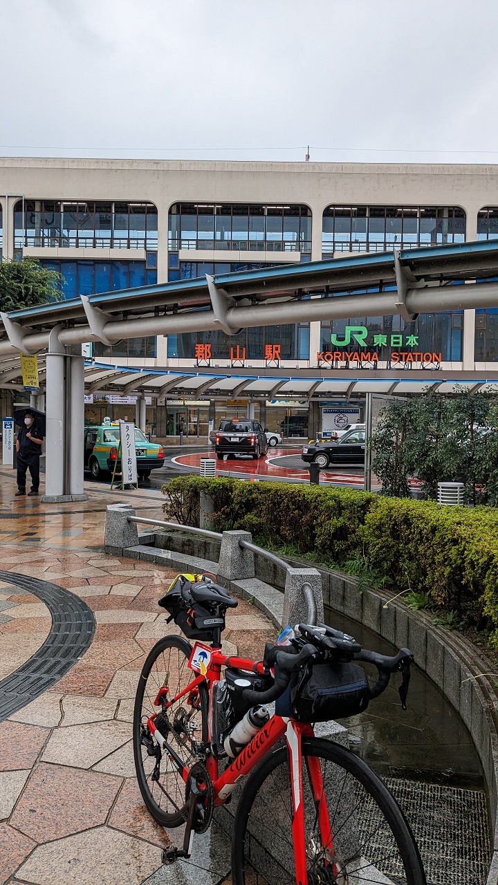 PC16の桜を無事撮って、ウイニングラン?という感じで坂を上っていたら少しタイヤがグニグニしてる?怪しいので最後の最後、残り5㎞位のところで空気補充してあとは市街地。とにかく気を付けて2日ぶりに郡山駅前。PC17のコンビニでレシートゲット!14時半でした~。