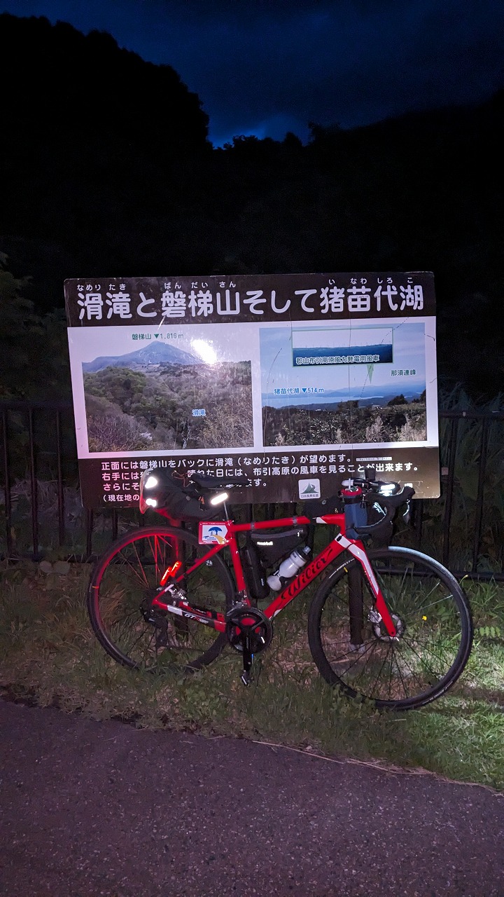 レークラインを通って(暗くなってきたのでライトフル点灯)、磐梯山の西側を走り(登り少なくて助かる)