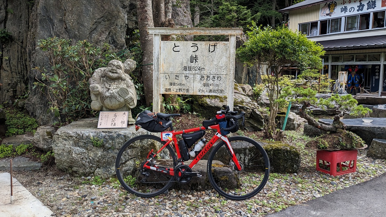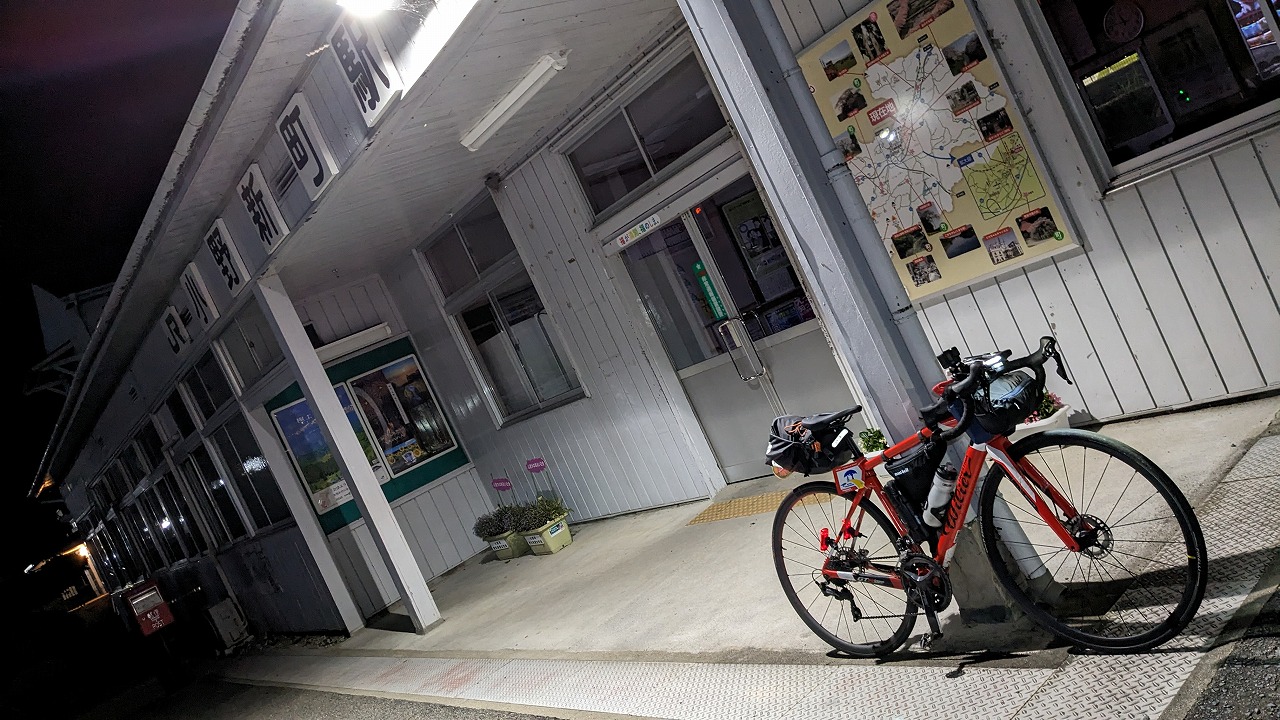 その先なぜか西の方へ向かい、下り基調になってきたかなというところでコンビニ。ちょっと眠気覚まし買ったり。店員の方に明日のヒルクライムに出られるんですか?みたいなことを聞かれ、何の話だろうと聞いてみたら明日というか今日?大会があるとのこと。少し会話をしてお暇。その先でPC13。小野新町駅。