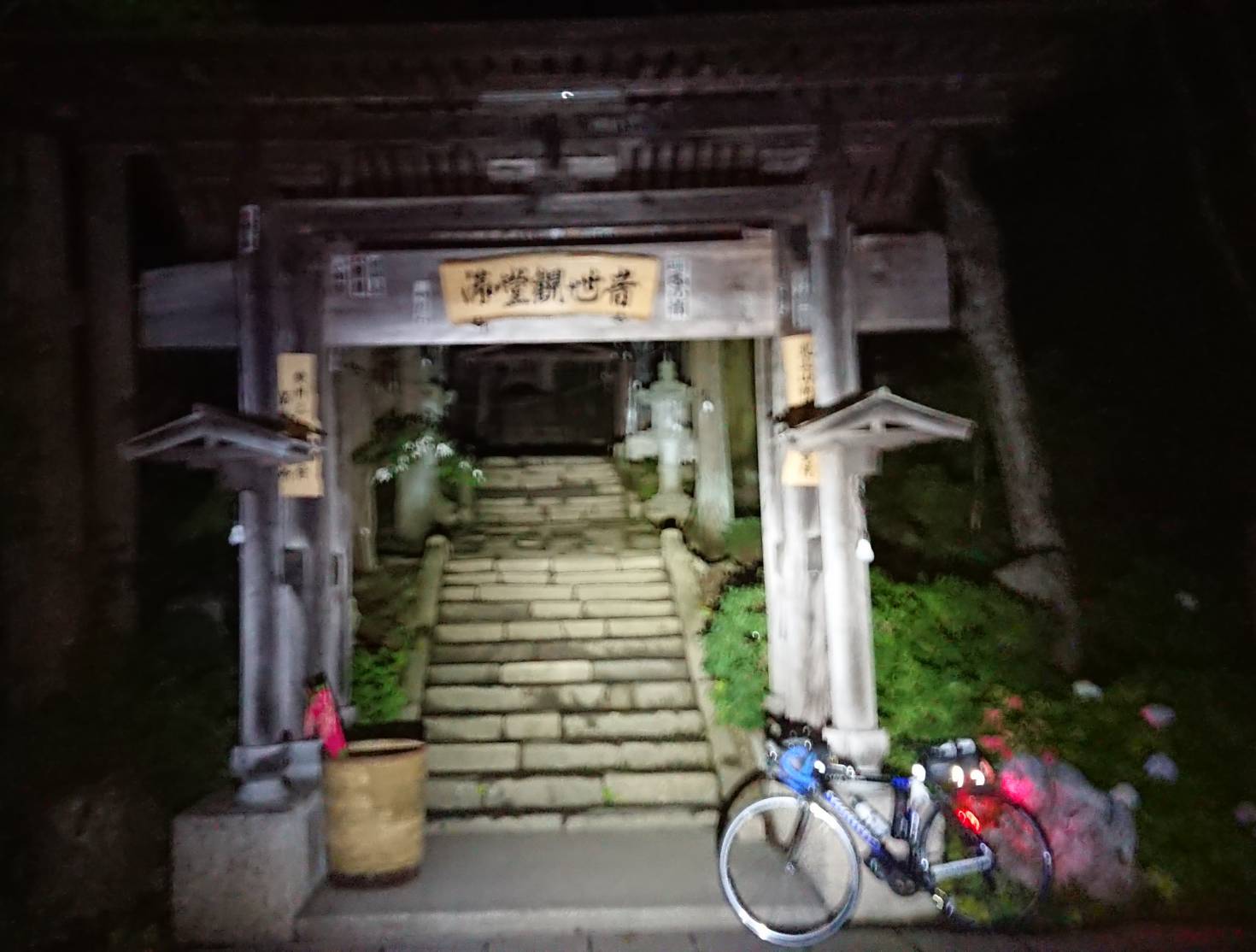 PC1には19時くらい、130㎞は長い・・・。ほぼ晩御飯、きつねうどん、水、おにぎり、ゼリー、コーラ。今回はゼリーとコーラ(orオランジーナ)をバックポケットにさして走る作戦にした。ライトもフル装備にしてひとまず道の駅まで、仮眠難しいとのことだったので一応休憩でkりるかなという感じで。トイレ休憩と自販機でいろはすリンゴ。座ったものの10分くらい休憩で終わり。先に進む。