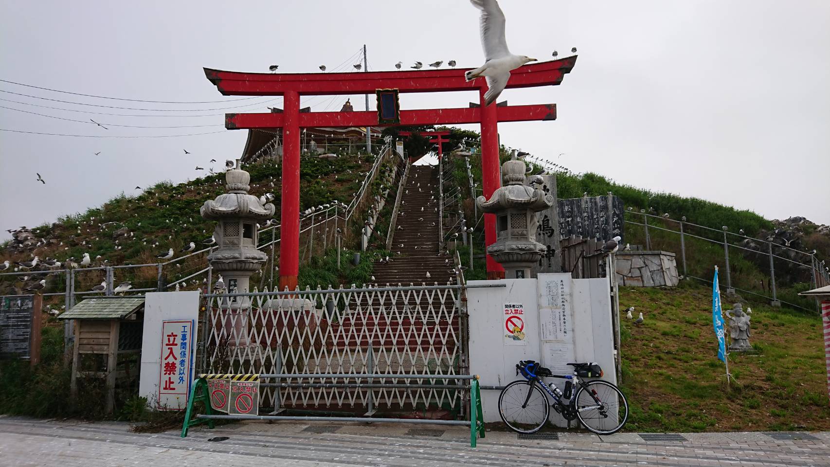 途中のフォトポイントで写真を撮る。ウミネコの大群で糞がすごいのでさっさと撮って退散。