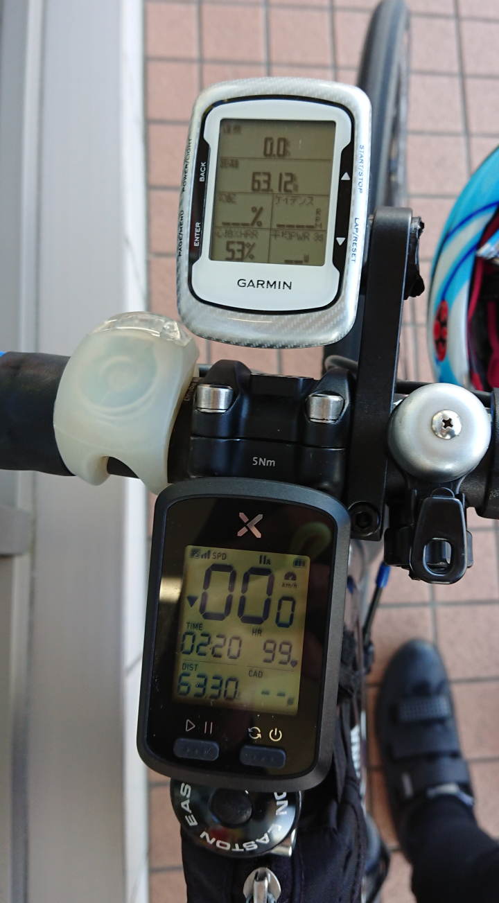 いつもルートで周回コースまで、Edge500と比較しながら進んでいると距離がG+の方が多めに出ている感じがする・・・。なので試しに履いている25c(2105)から23c(2096)にしてみた果たしてどうなるやら。