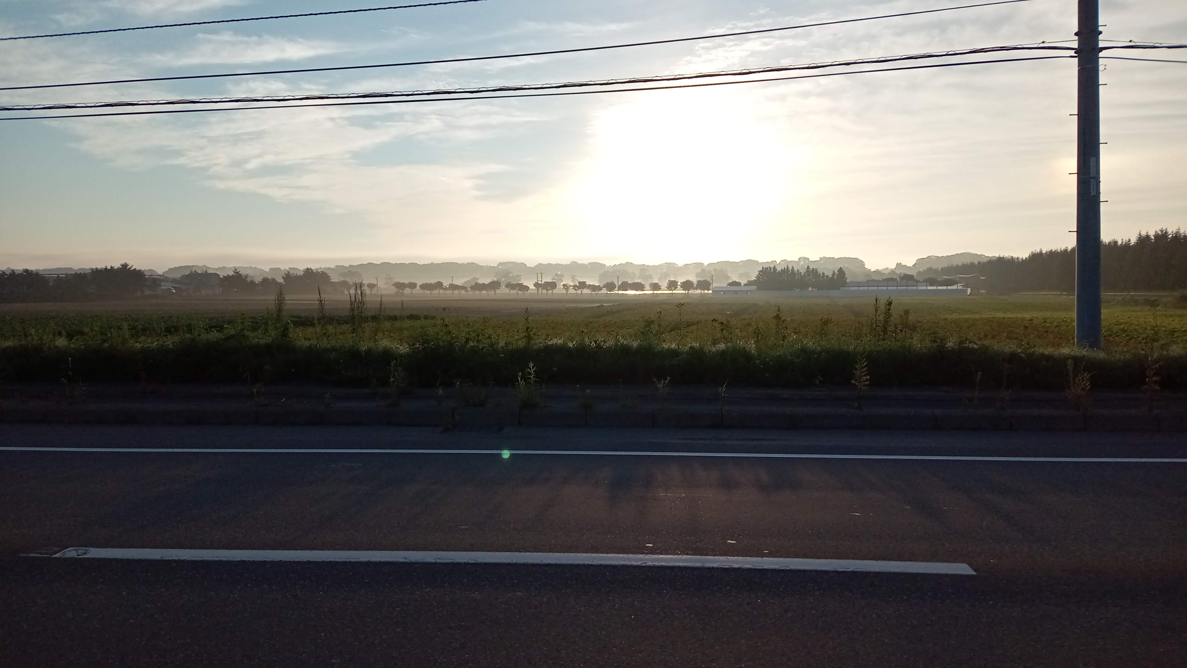 3時45分に起きて準備、昨日買った食べ物を食べる(しかしこれ全然補給足りなかった…)、4時45分くらいに出発。ルートに復帰し、まだ早朝の車がほとんどいない大通りを走る。