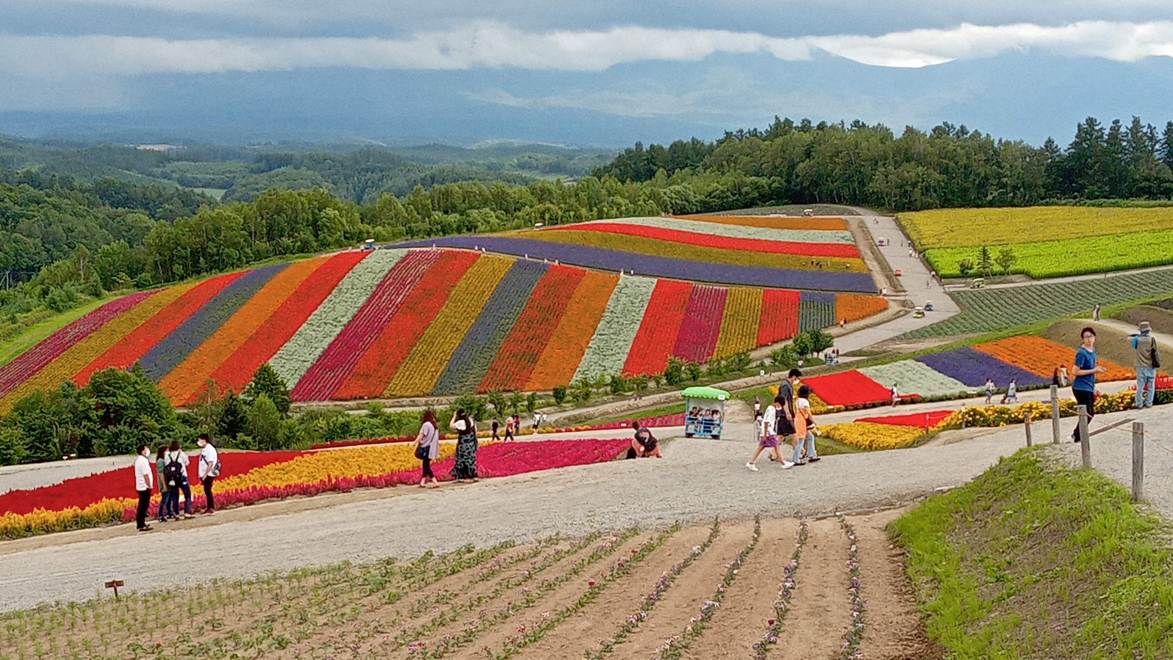 良くTVの観光番組で見た四季の丘を時間があったので寄ってみた、混む時期なので仕方がないけどささっと丘陵に植えられた花をみて、頑張ってよく来たな~(´▽`)と思いながら写真を撮って出る、ついでにメロンの缶ジュースを買ってゴクリ。