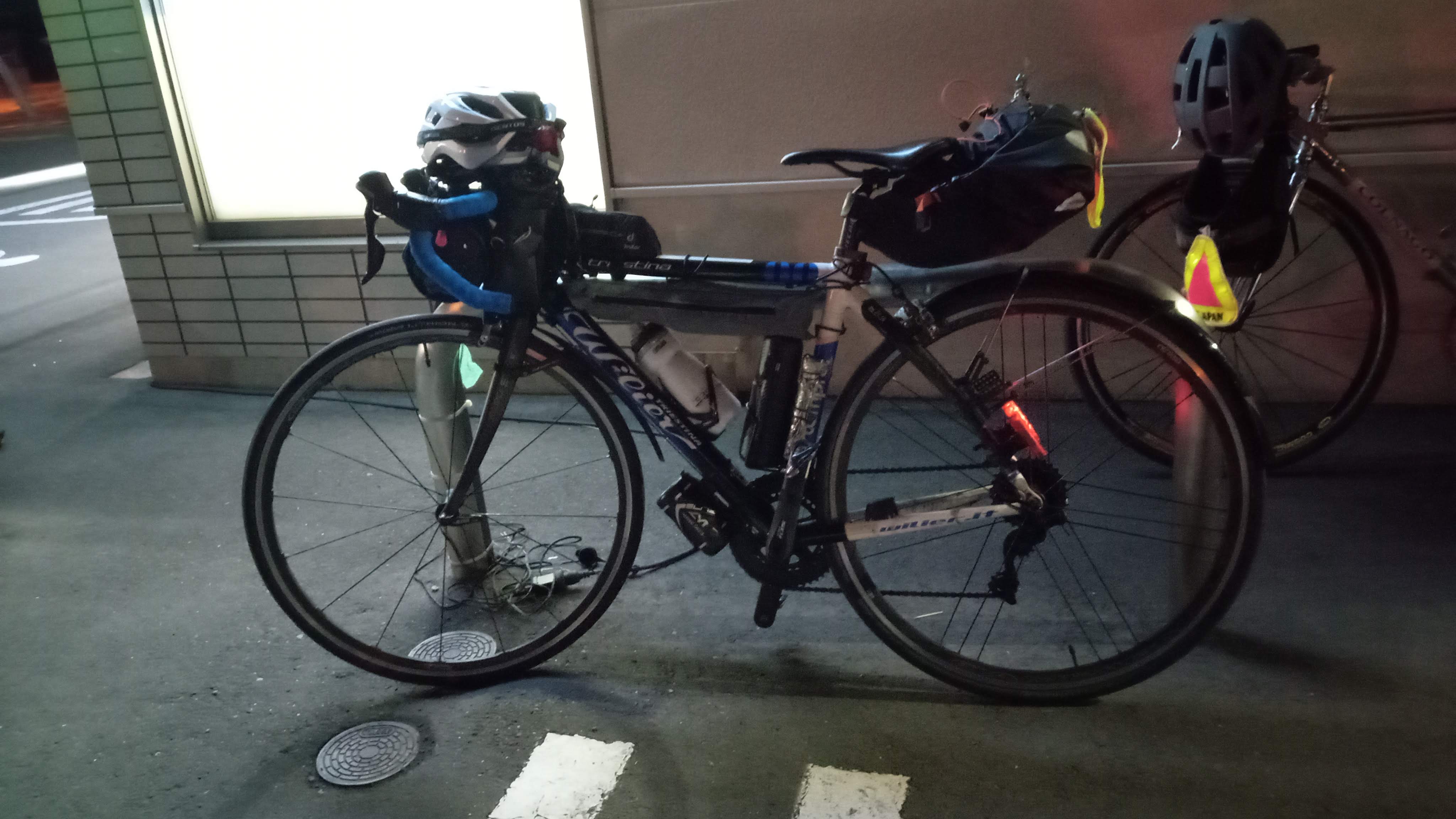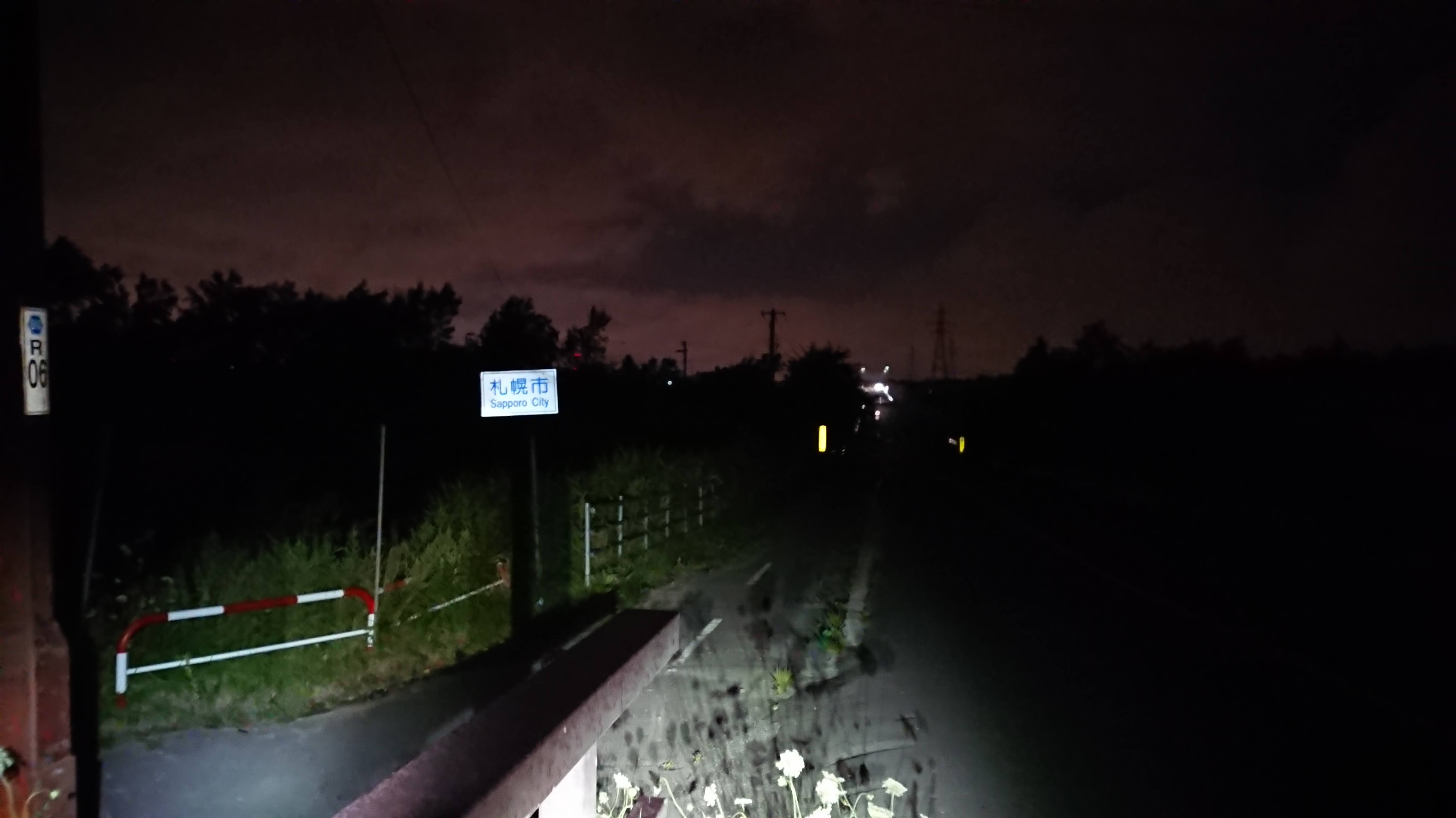しばらくすると雨もやみ、路面が乾いたところに、ちょうど夕暮れ、コンビニもあったので休憩。リポDとかおにぎり、サラダを買って晩御飯。ライト類も再度チェックし出発。