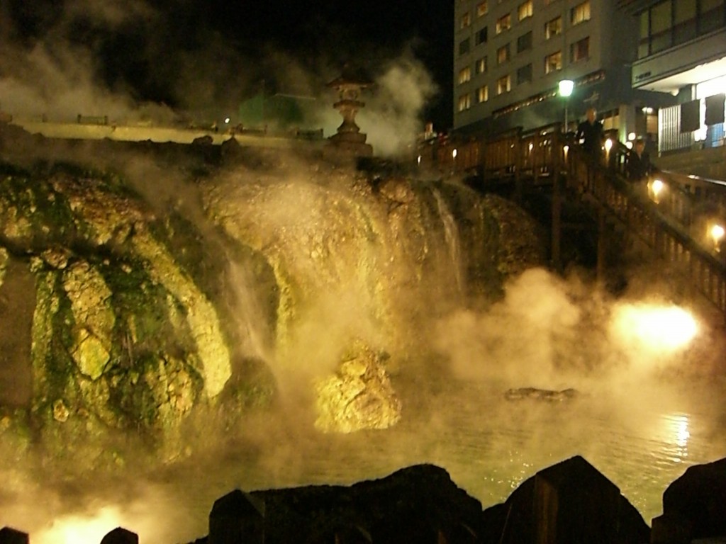 ロマンチック街道を自走で?がんばる自転車の人を追い抜きながら登っていくと草津に到着。硫黄のにおいが凄い。