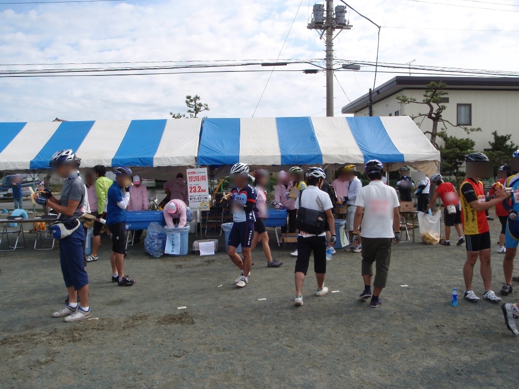 お弁当の中身撮るの忘れました、食べ始めたら12時半に出ないと足切りになってしまうとの放送が何回も流れ始める、指導員の人のアルファベットもWやらYやらでどうやら最後の方・・・。ちょっとトイレ行ってYあたりで出発、周りの人も俄然やる気なのか25km/h以上で巡航、それくらい出るなら初めから早い組で出ましょうと誰かが苦笑いしてたとか何とか。