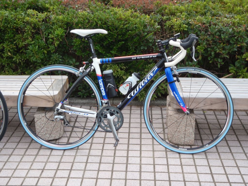 ちょっとハンドルはクィック気味、STIが黒105でかっこよかったダブルって書いてあったけどレバーの挙動が違うのかな?試すの忘れた。