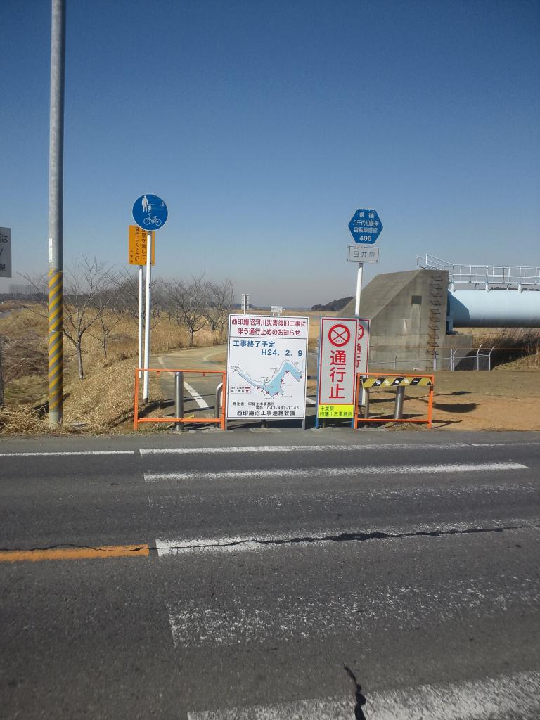 予想では印旛沼CRの開始地点だったがどっかでずれたのか?前回来た時にCRは工事で通行止めと知っていたので一休憩してから帰路へ。そういえば走り始めた瞬間にCR入り口に着いたロード乗りの人が「ここも通行止めなのか_| ̄|○」と言っていたなぁ同じ境遇か。