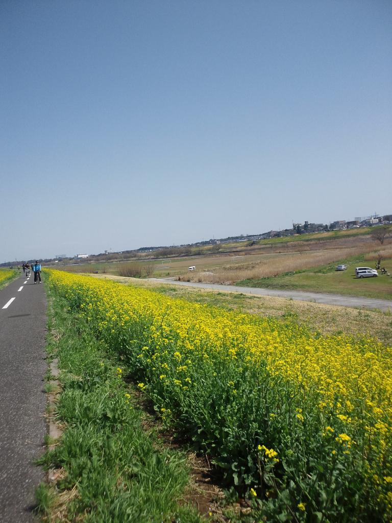 とりあえず見なかったことにして再び北上、と直ぐ行った所で菜の花畑?というか土手一面が菜の花で一杯でした。