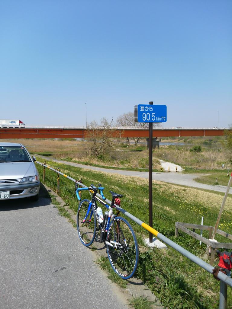 決戦用タイヤを削りつつ泣く泣く走って、利根川のCR、川は見えなかったけど。表示板には「海から95.0km」遠い。