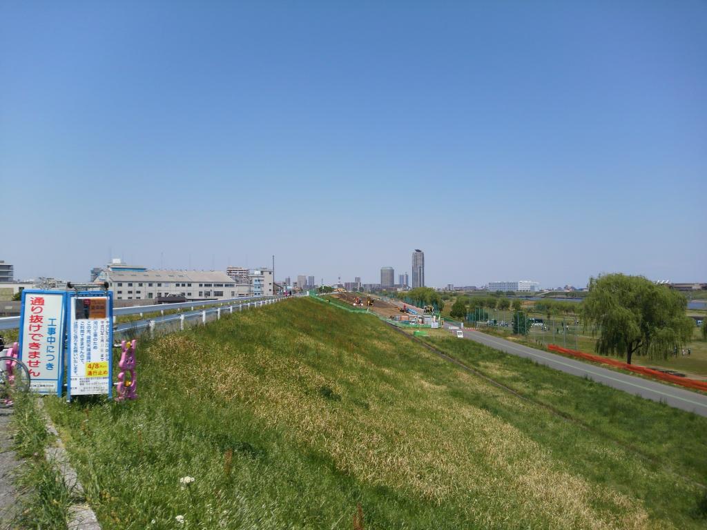 尾竹橋辺りで右岸に渡り北上するも、向かい風と空気圧低いタイヤでひやひやヘロヘロながら走って岩淵~・・・?