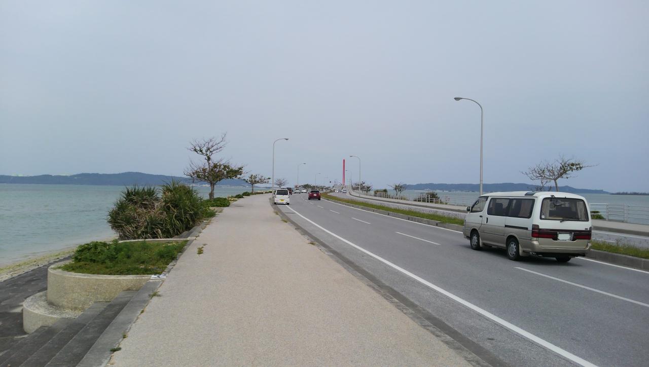 色々用意して12時15分に那覇市内出発、目的地は北東にある海中道路、家族はレンタカーで先にぷぃーっと行ってあとから追いかける感じに。