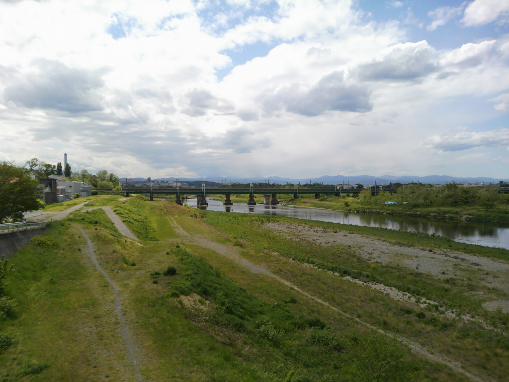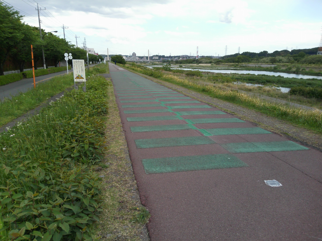 ずっと右岸を走って四谷橋?で左岸へ。途中有名な人口段差に遭遇。クロスなのでディレイラー辺りがガッチャンガッチャンいいながら通り抜けるとアレって1箇所じゃなくて複数あるんですね、なんども段差にボコボコされながら何かに似ていると思ったら、スキー場のリフトで鉄塔の中継にあるタイヤに載ったときの間隔と同じでした( ̄~ ̄;)