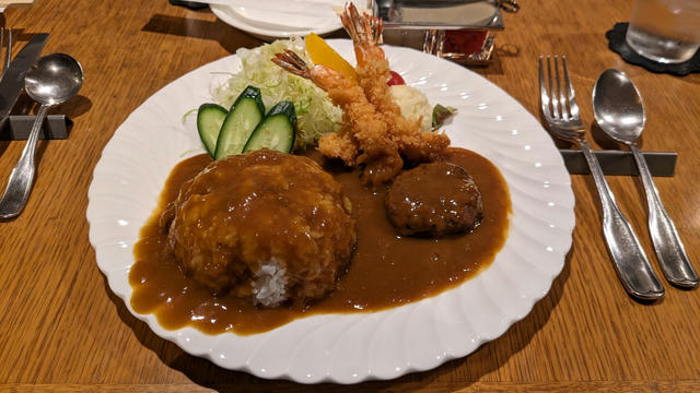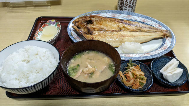 チェックインして、近くの定食屋へ。遅めの時間でやっていただけてありがたい。