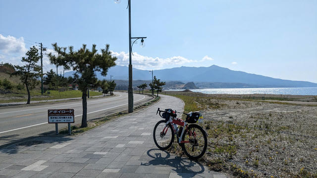 海岸線を走ってアップダウンでちょっと風もあり消耗。速度は落ちるがもうすぐ着くで励ましあいつつ。