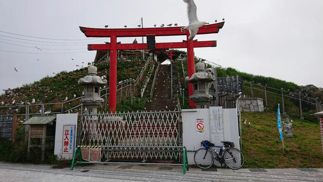 途中のフォトポイントで写真を撮る。ウミネコの大群で糞がすごいのでさっさと撮って退散。