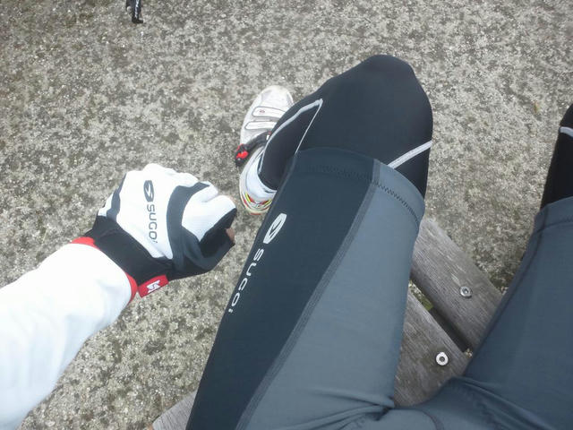 なので今日の装備は通販で買ったSugoiのレーパンEvolution shortとRS Gloveを導入、あとはSugoiのコンプレタイツと長袖夏ジャージ、長袖インナーで。