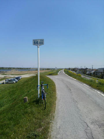 象公園でゼリーで休憩( ̄ー ̄)b、しかし風が強い・・・・。もぐもぐしていたら団体様が横を通り抜けてそのまま北印旛へ行く模様だったので離れてから出発。と走ると北印旛入り口で追いついてしまったので、西向き向かい風の中がんばって追い抜いて少し離してから後は楽チン走行で酒直水門、そのまま北へ進んで自転車看板の交差点を今度は右に曲がって大きな道へ出る。前回は迷ったので素直に北上。5kmほど走ると利根川着きました。但し風MAX( ̄∇ ̄;