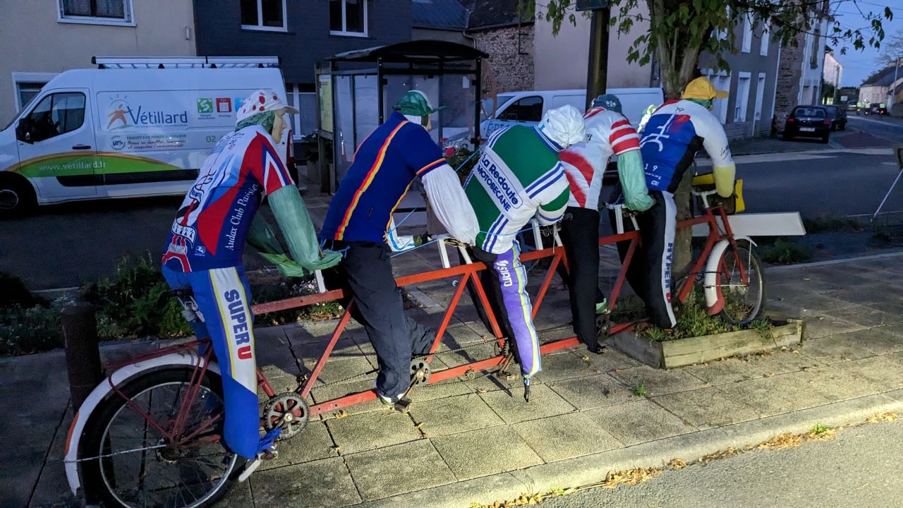 いよいよスタート時間となり旅が始まる。センサーの位置がちょっと先なのである意味パレード走行?数分遅れでセンサー通過しいざスタート!。ランブイエ城の門のところの石畳みに一旦気をつけて通り抜け車道へ。