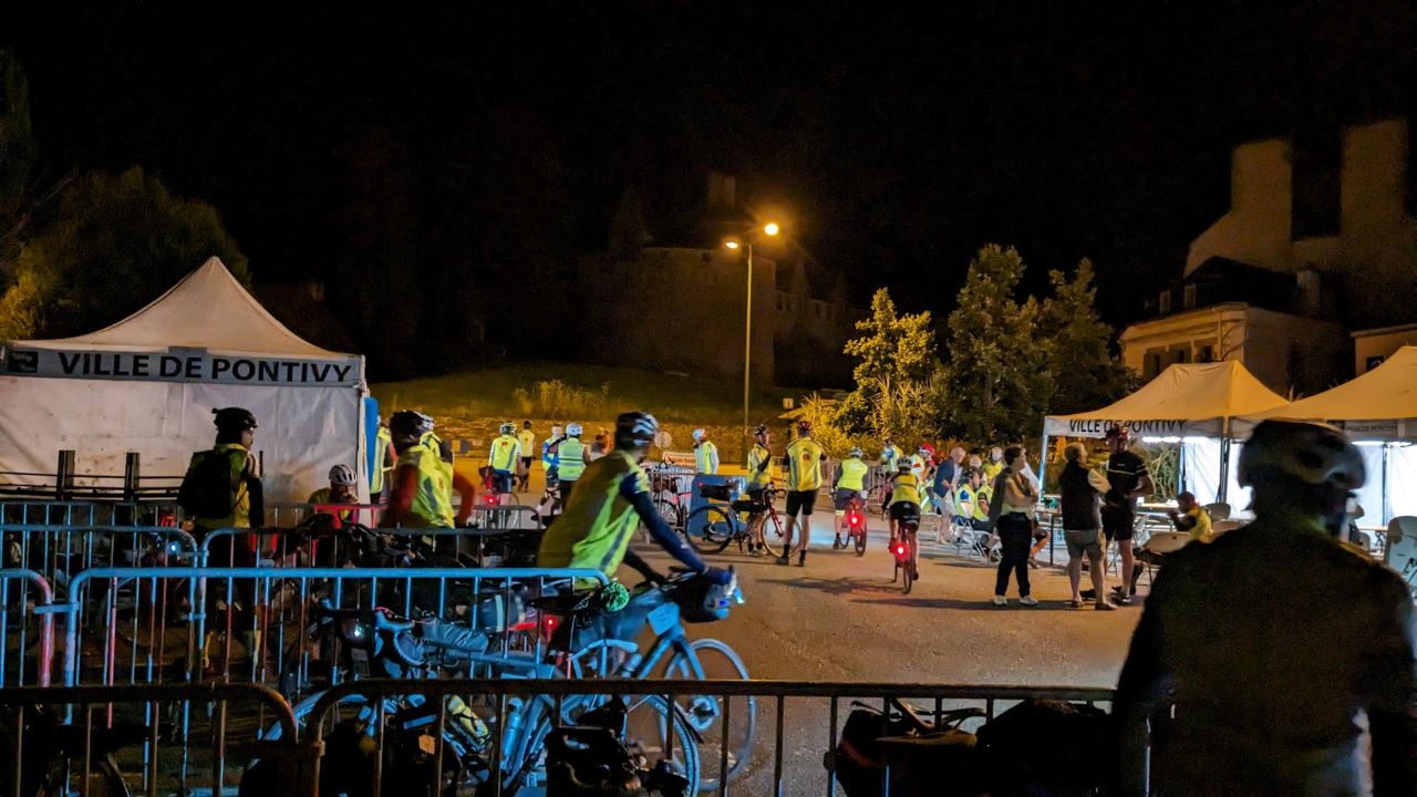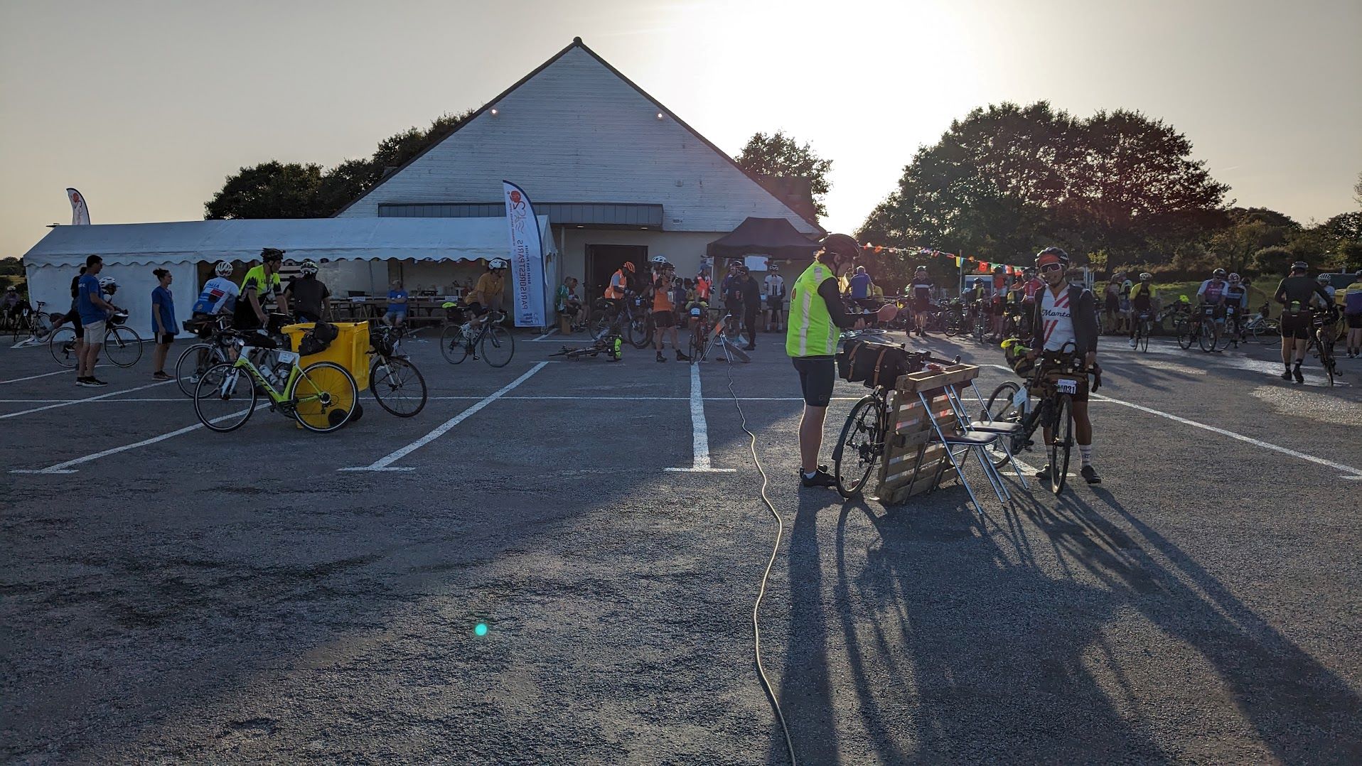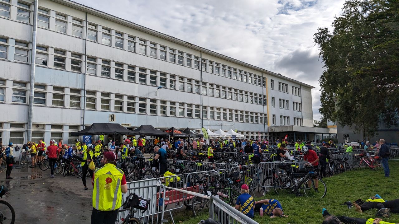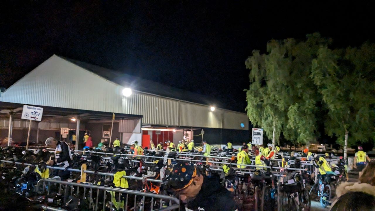 車検はライト等の確認、反射ベストは一瞬指摘されたけどAJの反射ベストの柄が気になったらしい。指さしてアピールしたら通った。スタンプをその先で押してもらいスタート待ち。