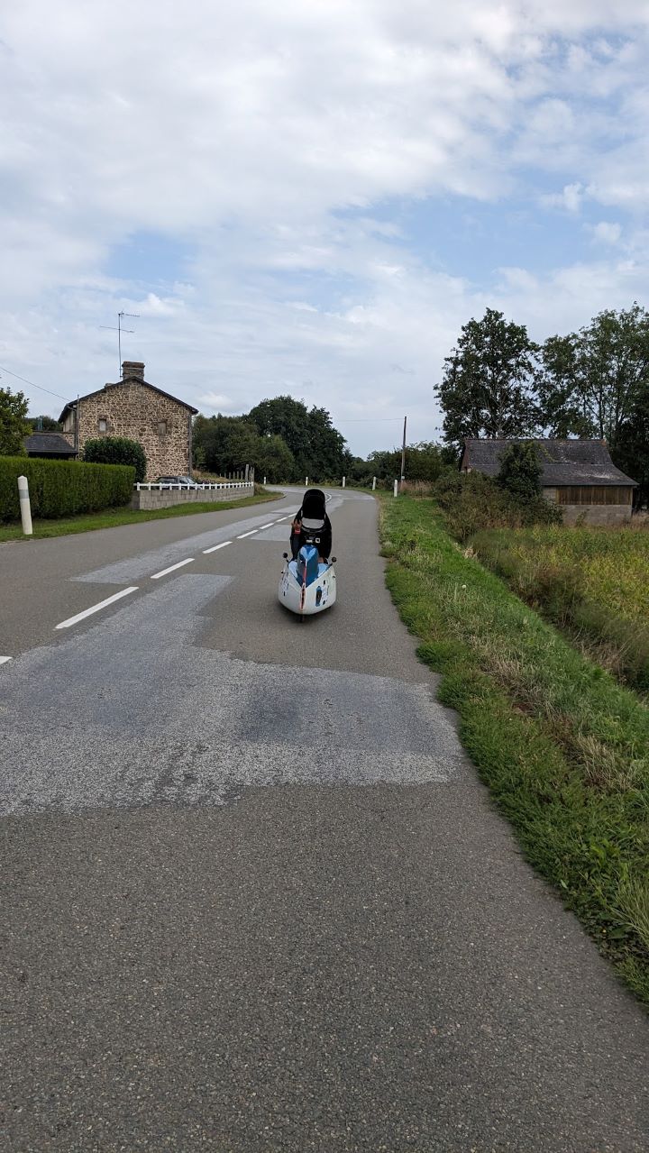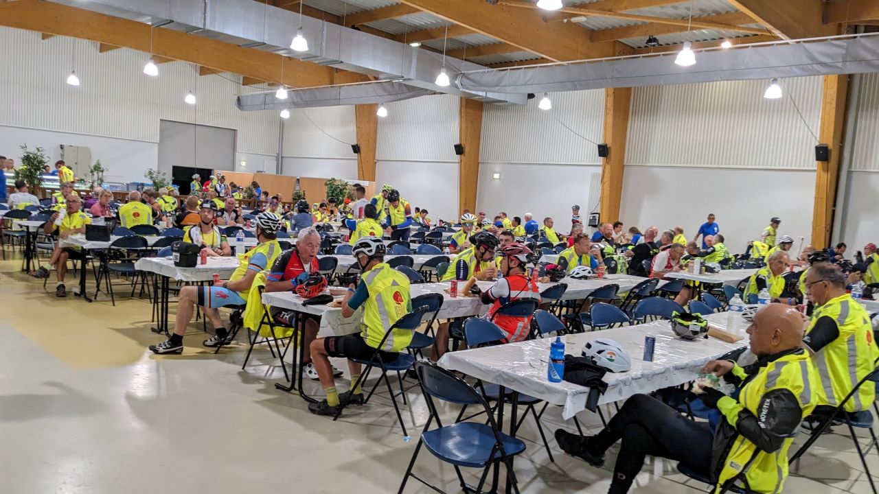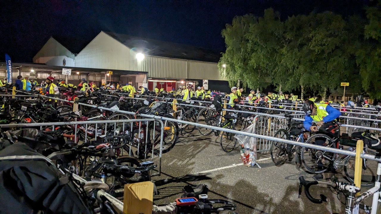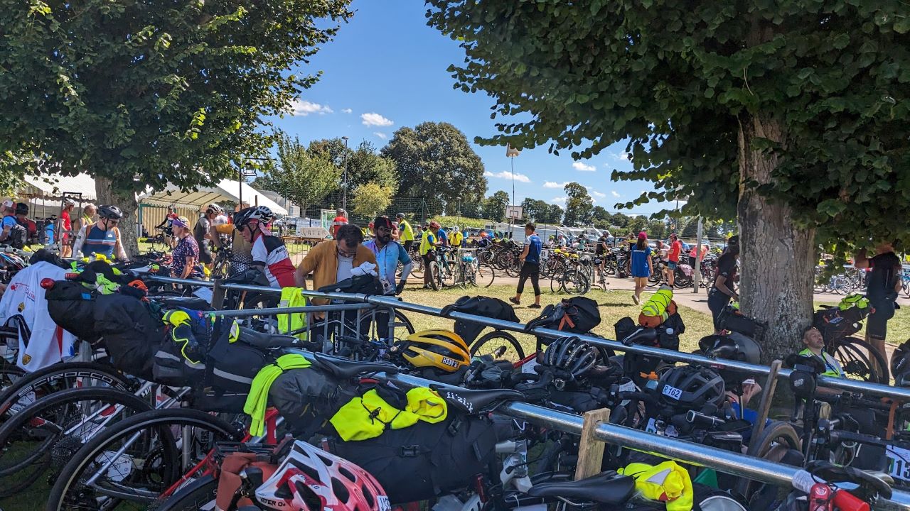 車検はライト等の確認、反射ベストは一瞬指摘されたけどAJの反射ベストの柄が気になったらしい。指さしてアピールしたら通った。スタンプをその先で押してもらいスタート待ち。