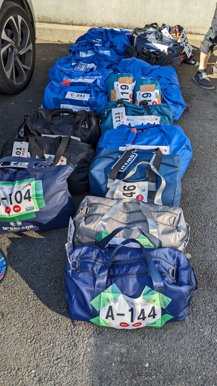 ドロップバッグの荷物を回収して、ギューギューに輪行箱とスーツケースに詰める(お約束のなぜか行きより荷物が多くなってないか?現象)