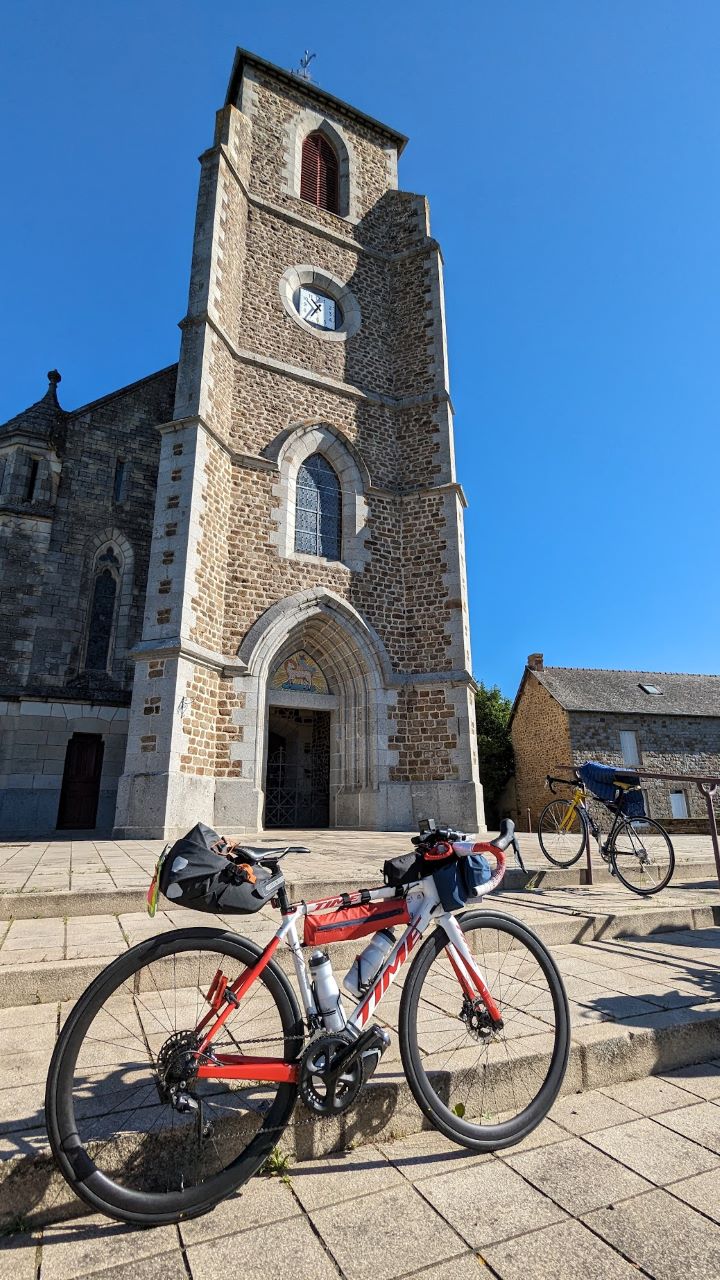 アップダウン気味のところを走って教会の前にエイドがあったのでちょっと停まるついでに写真を撮る。