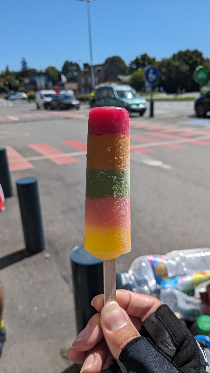 走っていると暑さ増してきたので、大きいスーパーを見つけたので寄ってドリンク補給。箱アイスしかないのでどうしようか迷って、買わないで出てきたら後からきた日本の方が買ってて、要りませんか?と聞かれ、もちろん!要ります!、あげますよと言われ大変感謝!冷たくておいしかった~。(AJ千葉ジャージの方でした)
