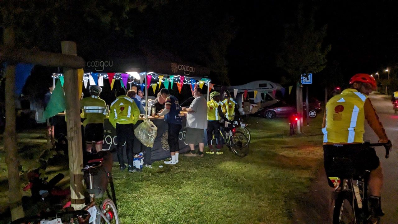 再出発。ルディアックまで51㎞ほどだったけど途中でなんかある???私設エイドにしては結構大きかったのでシークレットPCかと勘違いした。Sさんと離れ離れになってしまったのでここで待つことにして、トイレ行ってからコーヒー。