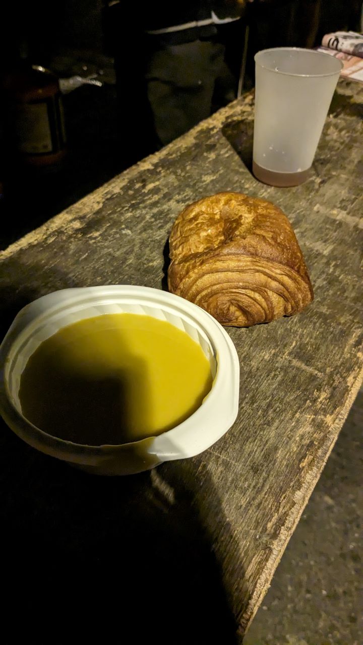 ずーっと走ってPC1の手前で前回も寄ったベーカリーがあったので今回もよる。クロワッサンとパンオショコラを購入した。